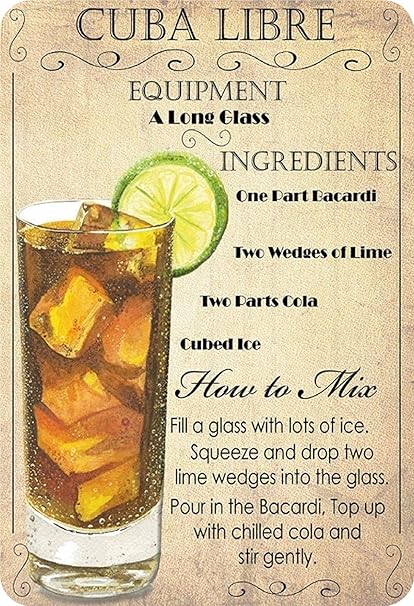 Targa In Latta Con Ricetta Del Cocktail Cuba Libre 20 X 30 Cm Per La Casa Bar Party Cantina In Metallo 134 Amazon It Casa E Cucina from m.media-amazon.com. Per maggiori informazioni, visita il loro sito web qui. We did not find results for: Maybe you would like to learn more about one of these? Check spelling or type a new query.